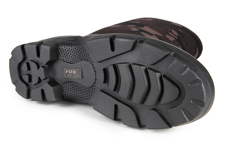 Bottes en néoprène, parfaites pour une utilisation dans des conditions humides/boueuses Semelle à crampons en caoutchouc durable pour une meilleure adhérence Semelle intérieure en EVA Tige en caoutchouc Impression camouflage Fox Doublure en mesh 3D pour plus de confort Puller arrière pour un retrait facile Néoprène 6 mm /ul>