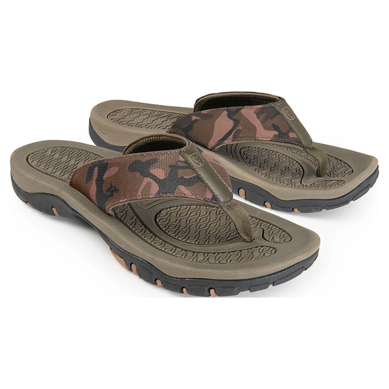 Kaki / Camo Flop Flops Slip On Sangle supérieure en textile rembourrée dans un motif camouflage Fox unique Semelle extérieure synthétique profilée et coussinéeSemelle adhérente