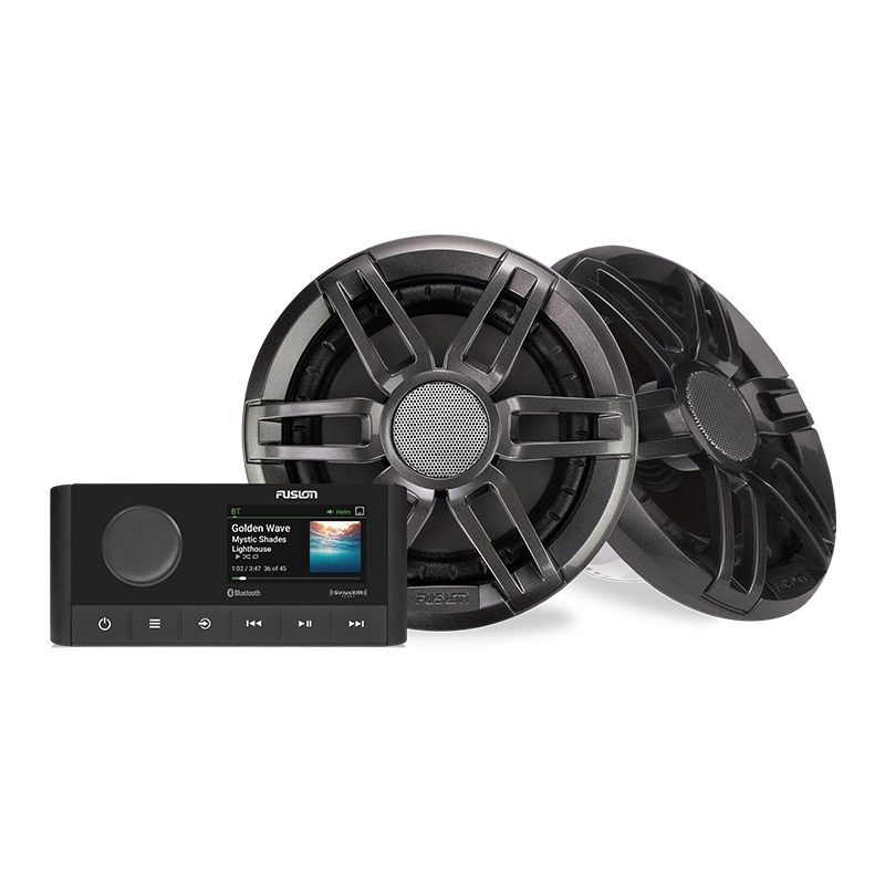 – Profitez de votre musique dès que possible. La chaîne stéréo marine et les deux haut-parleurs sont prêts à être installés.- Contrôlez facilement votre musique à partir d’un MFD1 Garmin compatible, d’un appareil intelligent ou d’une montre Garmin.- L’amplificateur de classe D intégré offre une plus grande efficacité et une meilleure puissance de sortie.- La technologie Multi-Zone™ vous permet de commander deux zones audio distinctes.- Mettez facilement à jour le logiciel via Bluetooth®2 à partir de l’application Fusion-Link™ sur votre appareil intelligent compatible.- Étendez votre système audio avec les enceintes, les caissons de basses et les amplificateurs de bateau Fusion compatibles.Les enceintes Fusion sont conformes à la norme IP65 pour protéger contre la poussière et les infiltrations d’eau, et ont été testées pour offrir une protection élevée contre le sel et les rayons UV.Contenu :- Stéréo marine MS-RA210- Une paire de haut-parleurs sport marins gris de la série XS- Antenne AM/FM – Câble de descente NMEA 2000® de 2 mètres (6 pieds)- Deux câbles de haut-parleur de 6 mètres (19 pieds)- Housse de protection- Accessoires de câblage et de montage- Joint de montage- Quatre vis autotaraudeuses de taille 6- Deux cache-vis- Câbles d’alimentation et d’enceintes- Câbles d’entrée supplémentaire, de sortie de ligne et de sortie du caisson de basse- 12 vis Phillips en acier inoxydable (4,2 x 25,4 mm/8 gauge x 1″)