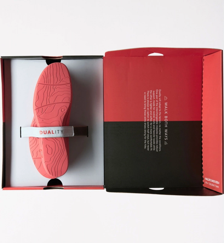 Un tout nouveau type de chaussures d’extérieur construites de manière responsable, axées sur l’innovation et la polyvalence. Fabriqué avec des matériaux recyclés et grâce à une semelle intercalaire interchangeable innovante, c’est deux chaussures en une. Une chaussure plus souple pour un usage quotidien et une plus dure pour les terrains plus accidentés ou les charges plus lourdes. Équipé d’une membrane GORE-TEX extensible pour vous garder au sec dans toutes les conditions, et renforcé avec un renfort de talon, une protection des orteils et un cuir de haute qualité.CaractéristiquesSemelle intercalaire interchangeable, permettant une utilisation tout-terrain.Une paire supplémentaire de semelles intercalaires est incluse : vous donnant la possibilité de profiter d’une chaussure confortable pour un usage quotidien et d’une chaussure plus résistante pour le terrain et/ou une charge de sac à dos plus lourde.Les semelles intercalaires interchangeables sont disponibles en deux densités différentes et sont conçues pour un maximum de confort et de soutien .GORE-TEX Extended Comfort avec stretch offre une imperméabilité respirante idéaleSoutien étendu du talon et protection des orteils pour la stabilité et la durabilitéCuir de première qualité provenant d’une tannerie auditée par the Leather Working GroupLes surfaces traitées DWR sans fluorocarbone aident à repousser l’eau et la saletéLa semelle extérieure à motifs techniques offre une traction et une stabilité élevéesAHAR® Plus (ASICS® ; Caoutchouc à haute résistance à l’abrasion) sur le talon de la semelle extérieure pour plus de durabilitéMOUSSE BLOOM® à base d’algues dans les semelles intermédiaires pour un excellent confort, économisant de l’eau douce et du CO2Tricot u pper avec chaussette confort, fabriqué à partir de 100 % polyester recycléSangle de boucle de doigt sur le talon et la langue pour une utilisation facileSangle et lacets fabriqués à partir de 100% polyester recycléTest de flexion étanche : 200 000 étapesMatériauxSupérieur : Nubuck hydrofuge 1,4 -1,6 mm sans fluorocarbone issu d’une tannerie auditée LWG (Classé Or/Argent) avec une empreinte environnementale réduite.Polyester recyclé (tricot et lacets).Doublure : GORE-TEX Extended ComfortSemelle intercalaire : Bloom FoamRencontre avec le talon : Semelle extérieure en Bio TPU : Caoutchouc WET GRIP™ / AHAR™ Plus sur la zone du talon.Instructions d’entretienNettoyage : Préparez les chaussures en enlevant la saleté de surface comme la boue et le gravier. Lors du nettoyage des chaussures Haglöfs, il est important d’utiliser une éponge douce sous l’eau courante tiède propre. Séchez les chaussures avec un chiffon propre ou un chiffon à température naturelle. N’utilisez pas l’aide d’une source de chaleur externe ou de la lumière directe du soleil. La chaleur directe peut modifier la forme de la chaussure. Les Chaussures ne doivent jamais être lavées dans une machine à laver. Pour un meilleur confort et un meilleur climat du pied, nettoyez également l’intérieur de la chaussure de temps en temps à l’aide d’une brosse douce et d’eau tiède. Retirez la semelle intérieure avant le lavage. Pour accélérer le séchage, remplissez chaque botte ou chaussure de papier journal et laissez le papier absorber la majeure partie de l’humidité avant de le retirer pour permettre aux chaussures de finir de sécher. Que vous nettoyiez l’intérieur ou l’extérieur, assurez-vous que vos chaussures sèchent à température ambiante, jamais à l’aide d’un radiateur ou d’une armoire de séchage (une chaleur excessive peut par exemple provoquer des craquelures du cuir). Les chaussures nettoyées sont mieux conservées à température ambiante à l’aide d’un embauchoir. Ne rangez jamais les chaussures sales. Avant la première utilisation, traitez les bottes et les chaussures avec un imperméabilisant, y compris les lacets et la languette. Après séchage, brossez les produits en nubuck et en daim avec une brosse à daim pour retrouver cet aspect poli. Une brosse à daim peut également être utilisée pour un nettoyage plus léger. Traitez régulièrement les surfaces nettoyées des bottes et des chaussures avec un imperméabilisant. Il est préférable d’appliquer certains agents sur la surface alors qu’elle est encore un peu humide et que les pores du cuir sont ouverts afin que l’imperméabilisant puisse pénétrer en profondeur (suivre les instructions sur l’emballage). Il est avantageux de traiter les bottes et les chaussures en nubuck et en daim avec de la cire pour une protection supplémentaire contre l’humidité et l’usure ; notez que cela assombrit la surface et prend un aspect différent – c’est tout à fait normal.