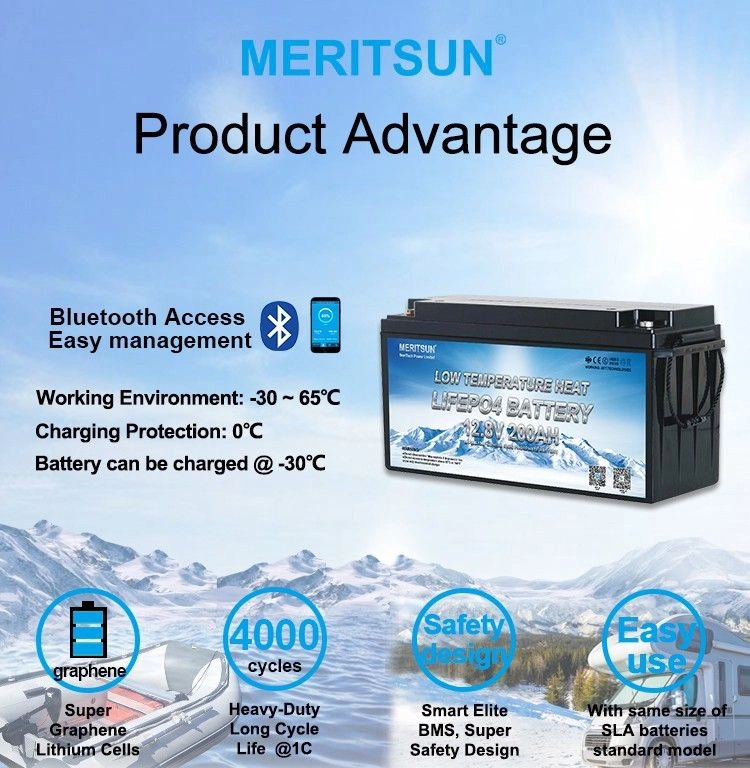 Meritsun Litiumbatteri 12V 100Ah BT Heat