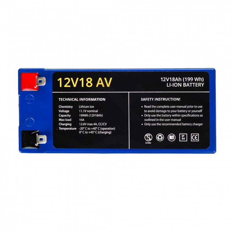 Rebelcell Ultimate 12V18 Med Laddare, le kit parfait pour votre équipement électronique dans le bateau !Rebelcell Ultimate 12V18Le 12V18 a la même taille que le 12V11 mais a une structure différente dans les cellules qui lui donne plus de puissance.Cette batterie est bien adaptée pour une utilisation même sur des écrans plus grands tels que 7-9 pouces.• Plus de 2 fois la durée d’utilisation d’une batterie au plomb 9A ordinaire.• Energie au bord de l’eau : Chargez jusqu’à 6 iPads ou 10 smartphones (via l’adaptateur USB Duo)• Compact et léger• La batterie pèse un peu moins de 1 kg !• Décharge complète (jusqu’à 100%) sans aucun effet négatif ni impact sur le cycle de vie de la batterie. (Notez qu’une batterie au plomb ne doit JAMAIS se décharger > 70 %)• Léger et compact, charge rapide (complètement chargé en 3-4H), BMS intégré, fonctionne avec un convertisseur AC/DC standard Norme IP54. Ils ne peuvent pas être complètement immergés dans l’eau ou supporter de fortes pluies. Pour éviter les problèmes, utilisez un boîtier de batterie étanche et placez la batterie verticalement à un niveau légèrement élevé afin qu’elle ne reste pas continuellement dans l’eau, ou que de l’eau puisse pénétrer par le haut de la batterie.Si vous utilisez un étui de transport de batterie, assurez-vous qu’il ne reste PAS d’eau (de la pluie par exemple) dans le sac de batterie car cela pourrait endommager la batterie. Les dommages causés par l’eau sont explicitement exclus de nos conditions de garantie.Rebelcell Charger 12.6V4A Li-ion for 12V18 AV BatteryRebelcell Charger 12.6V4A Li-ion, this is Rebelcell’s plus petit chargeur destiné au 12V11 & Batterie 12V18.Pour maximiser l’utilisation de leurs batteries Rebelcell, utilisez leurs propres chargeurs ! Il s’agit de leur plus petit chargeur conçu pour le 12V11 & Batterie 12V18. Il charge la batterie en 3 heures environ et est très petit et compact.Avantages : • Compact et léger• Facile à utiliser: De grandes pinces permettent une fixation simple à la batterie lorsqu’elle est en charge. • Protégé: Le chargeur est protégé contre la mise sur le mauvais pôle.Spécifications techniques : Chargeur de batterie Li-ion 12.6V4A• Dimensions : (lxlxh) 125x65x35(en mm)• Entrée CA : 230 Volt 50-60Hz• Du pouvoir: 50 Wh• Tension de charge : 12,6 V• Courant de charge maximal : 4 A• Profil de charge : CC/CVIndicateur de charge • LED rouge : charge• Vert : complètement chargé • Garantie 1 année