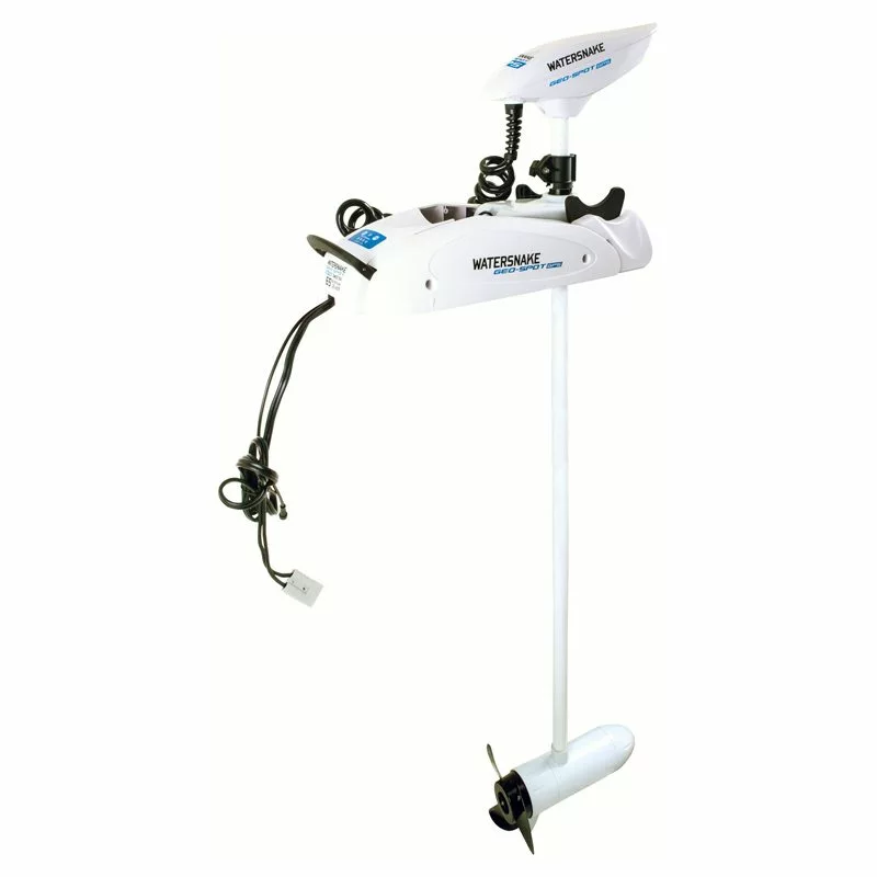 Watersnake Geo-Spot GPS est un moteur de pêche à la traîne pour l’eau salée qui est monté sur la proue. Le moteur électrique a une résistance à la traction de 65 lb (29,5 kg) mais n’est alimenté que par une tension de 12 V. Le moteur a une fonction d’ancrage, d’enregistrement de pistes, de retour en arrière des pistes enregistrées et de nombreuses autres fonctions.Spécification Modèle SW65 / 60 (GEO-SPOT GPS) Tension (V) 12 VOLT Protection intégrée contre les surcharges Résistance à la traction maximale (LB) 65lbs ( 29.5kg)MAX.RPM 1650Longueur variable SpeedRig 60 ”/ 152cmConsommation moyenne (A/H) 25 AMPConsommation maximale (A/H) 50 AMP Watt Max 420W Hélice anti-herbes à 3 pales Télécommande Commande au pied numérique en option (vendu comme un accessoire)Batterie 12 V requise (Notez qu’il ne faut pas utiliser de piles au lithium)Min. Taille de batterie recommandée 80 – 120Ataille du bateau jusqu’à 500kgPoids du moteur 15 kg